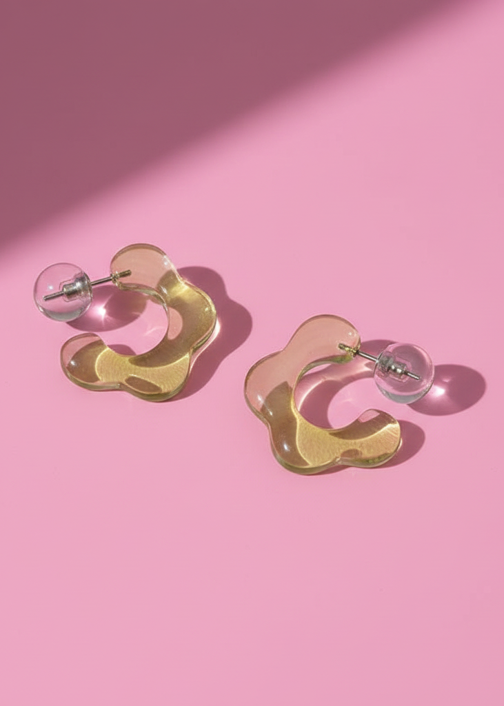 Releitura lúdica e moderna das argolas clássicas, utilizando um material translúcido na cor lavanda e verde. Material Acrílico.