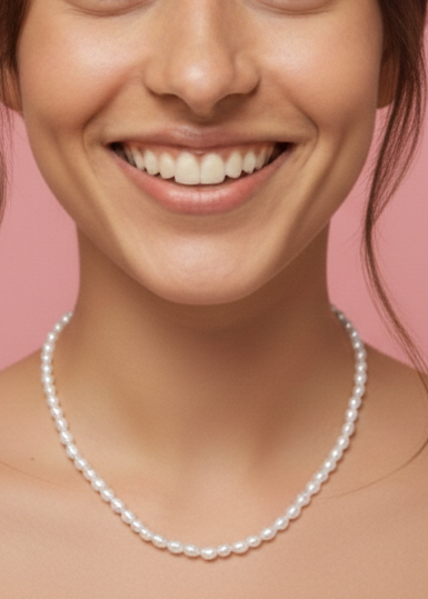 A peça apresenta um brilho perolado suave e acabamento delicado, sendo perfeita tanto para o dia a dia quanto para eventos especiais. Com fecho lagosta e corrente extensora em metal prateado, garante o ajuste personalizado e elegância para qualquer decote. Material plástico ABS.