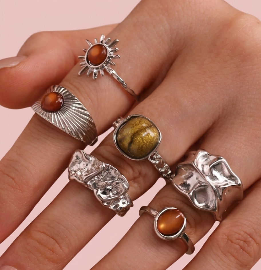 Conjunto de 6 anéis em liga de zinco.